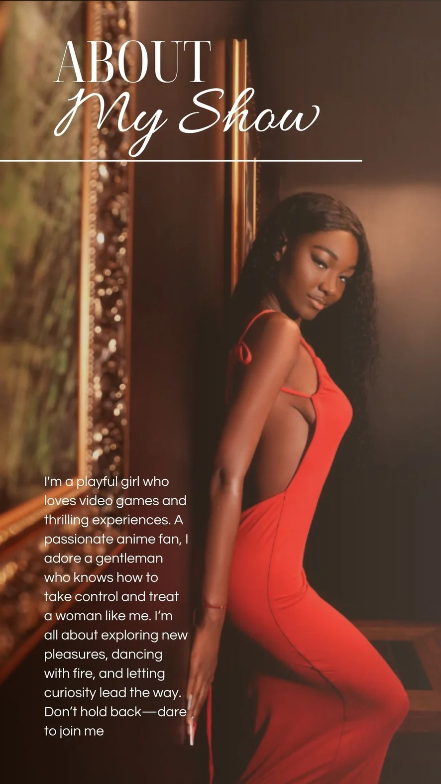Outdoor, Erotic Dance, Shower, Smoking, Sex Toys, Orgasm, Cowgirl, Yoga, Doggy Style, Spanking, Dildo or Vibrator, Blowjob, Deepthroat, Hardcore, Twerk, Ahegao, Handjob, Heels, Oil Show, Camel Toe, Fingering, Squirt